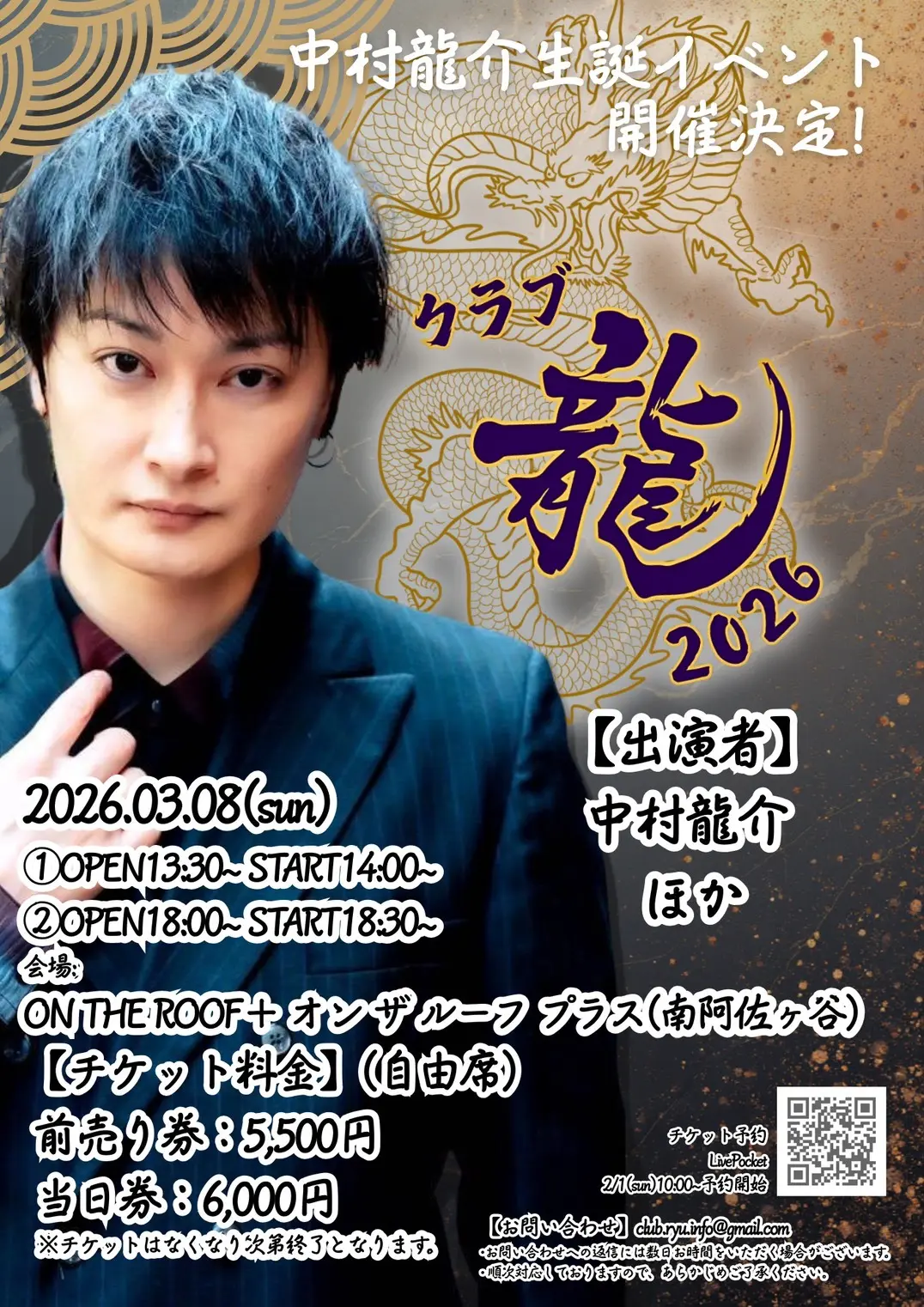 中村龍介生誕イベント「クラブ龍2026」第2部18:30開演