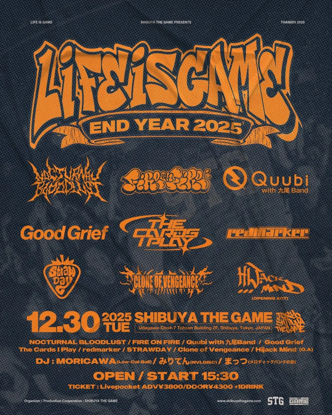 出演者 NOCTURNAL BLOODLUST / Quubi with 九尾Band / Good Grief / The Cards I Play / redmarker / Clone of Vengeance / Hijack Mind / FIRE ON FIRE / STRAWDAY