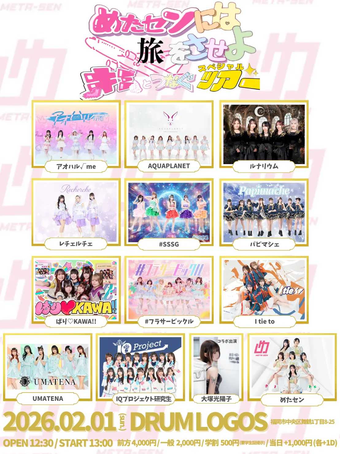 出演者 めたセン / UMATENA / パピマシェ / ルナリウム / AQUAPLANET / #フラサービックル / #SSSG / ばり♡KAWA!! / アオハル√me / レチェルチェ / I tie to / IQプロジェクト研究生 / 大塚光陽子