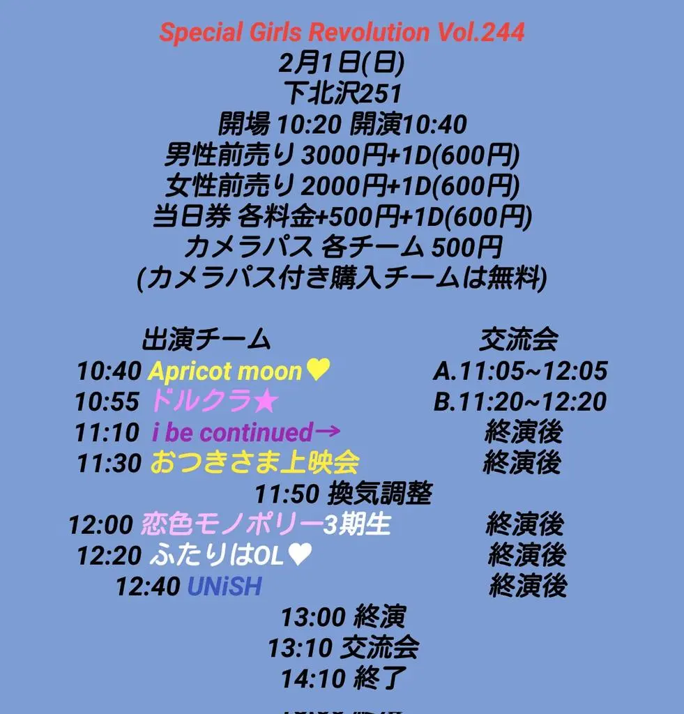 出演者 Apricot moon ♡ / ドルクラ★ / i be continued → / おつきさま上映会 / 恋色モノポリー3期生 / ふたりはOL♡ / UNiSH