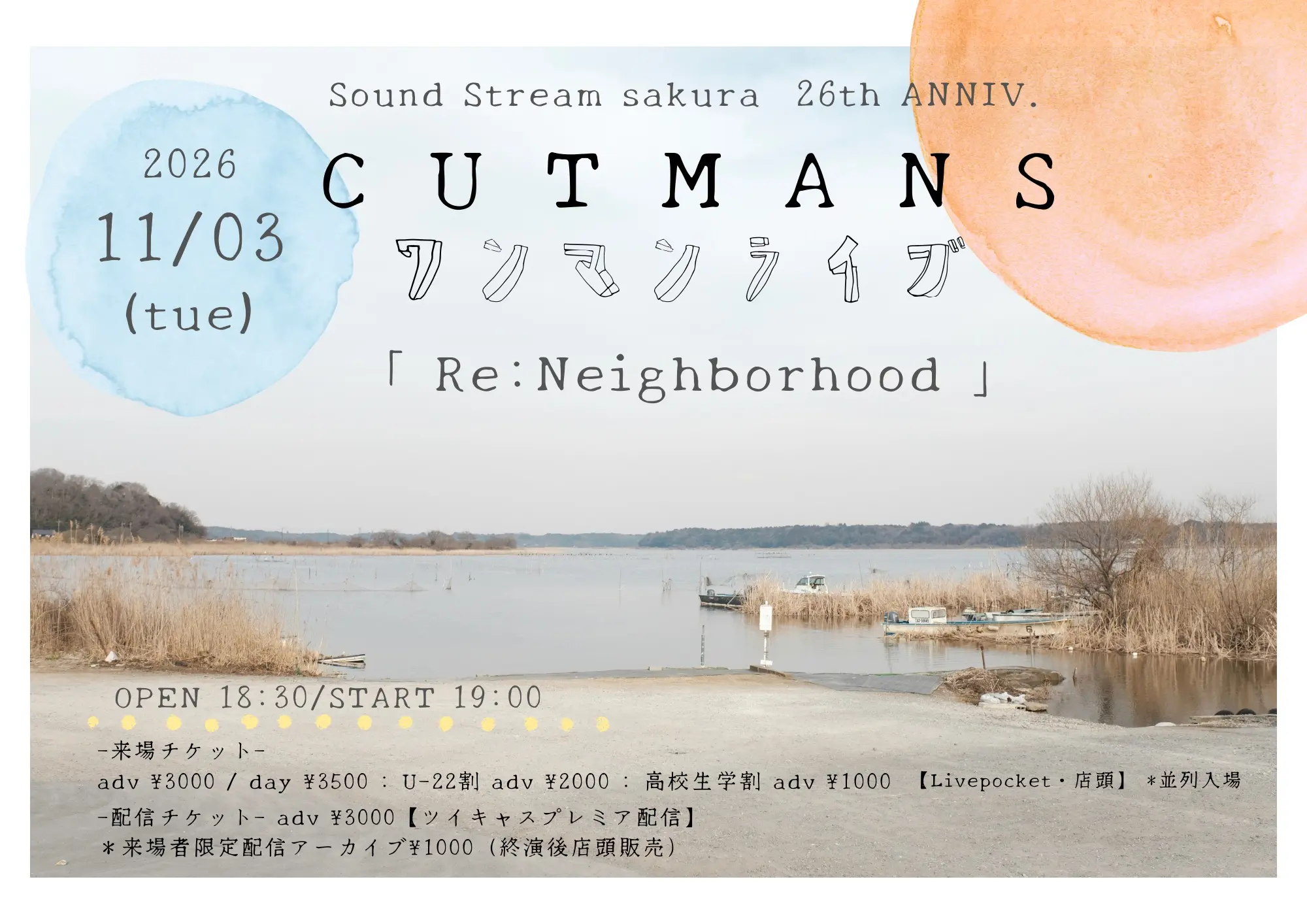 11/3(Tue) Sound Stream sakura 26th ANNIV. CUTMANS ワンマンライブ Re:Neighborhood