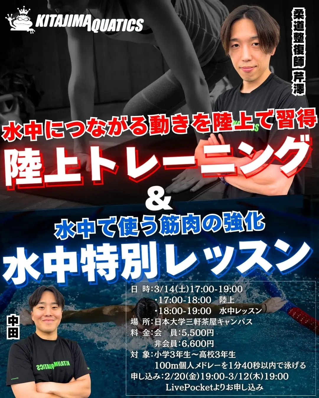 1月25日(土)14:30-16:00 【育成Aクラス:クロールのSwimに活かせるkickの習得】