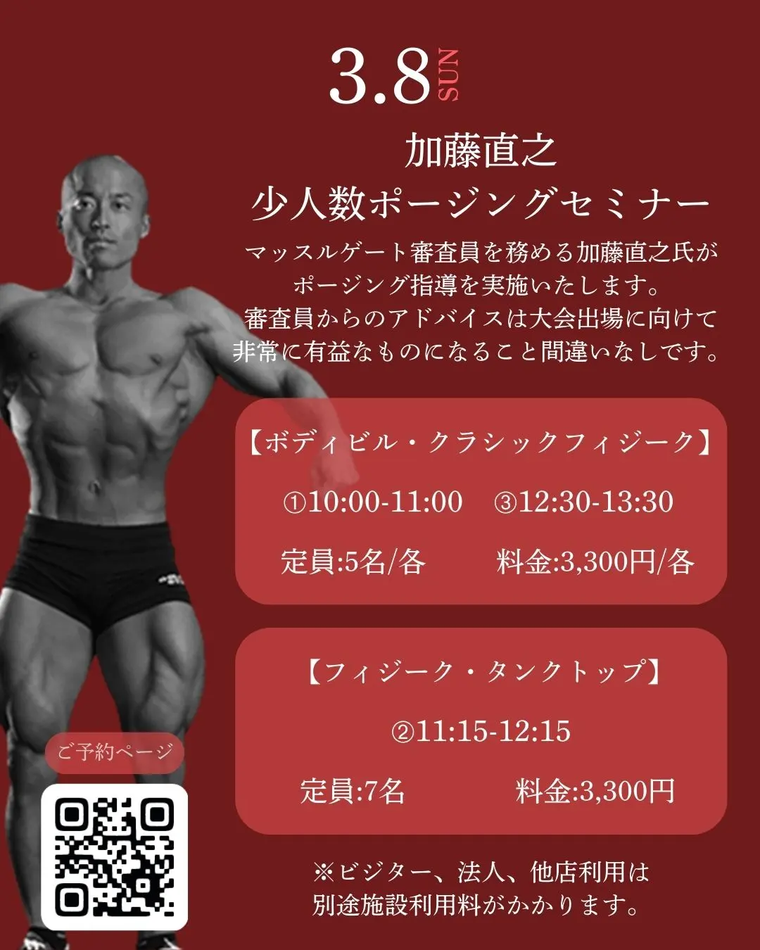 【種目別】4月少人数ポージングセミナー【加藤直之】