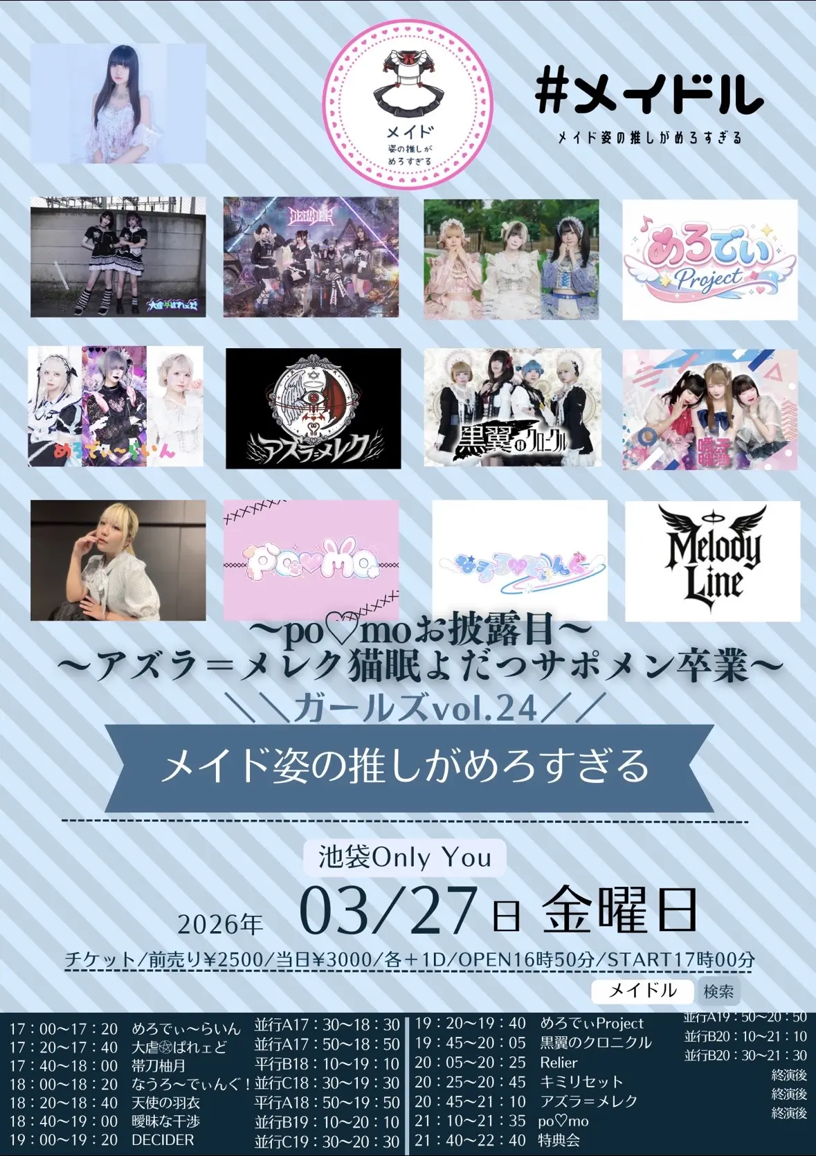 出演者 にゃんすきっ♡? / キミリセット / ゎんみゅー♡? / 天上天使 / アスパルテーム / おやすみセカイ / mignon / アズラ=メレク / ぷれしゃすぱーてぃー / DECIDER / めろでぃProject / ウルトラめっちゃ凄く良いグループ / ライオティカ / 大スッキ♡新党! / オーバークック