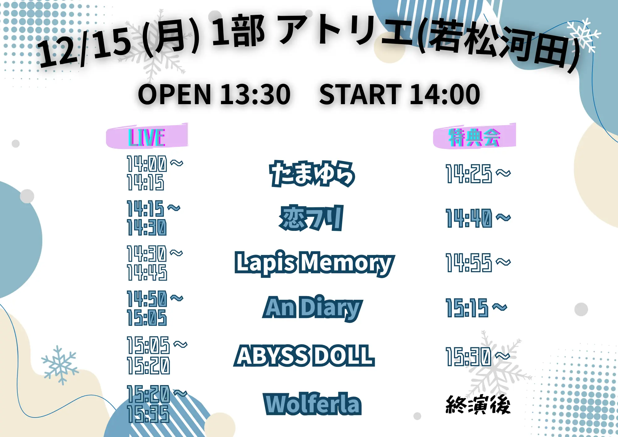 出演者 Wolferla / 恋してフリーズ / Lapis Memory / AnDiary / たまゆらMiracle / ABYSS DOLL