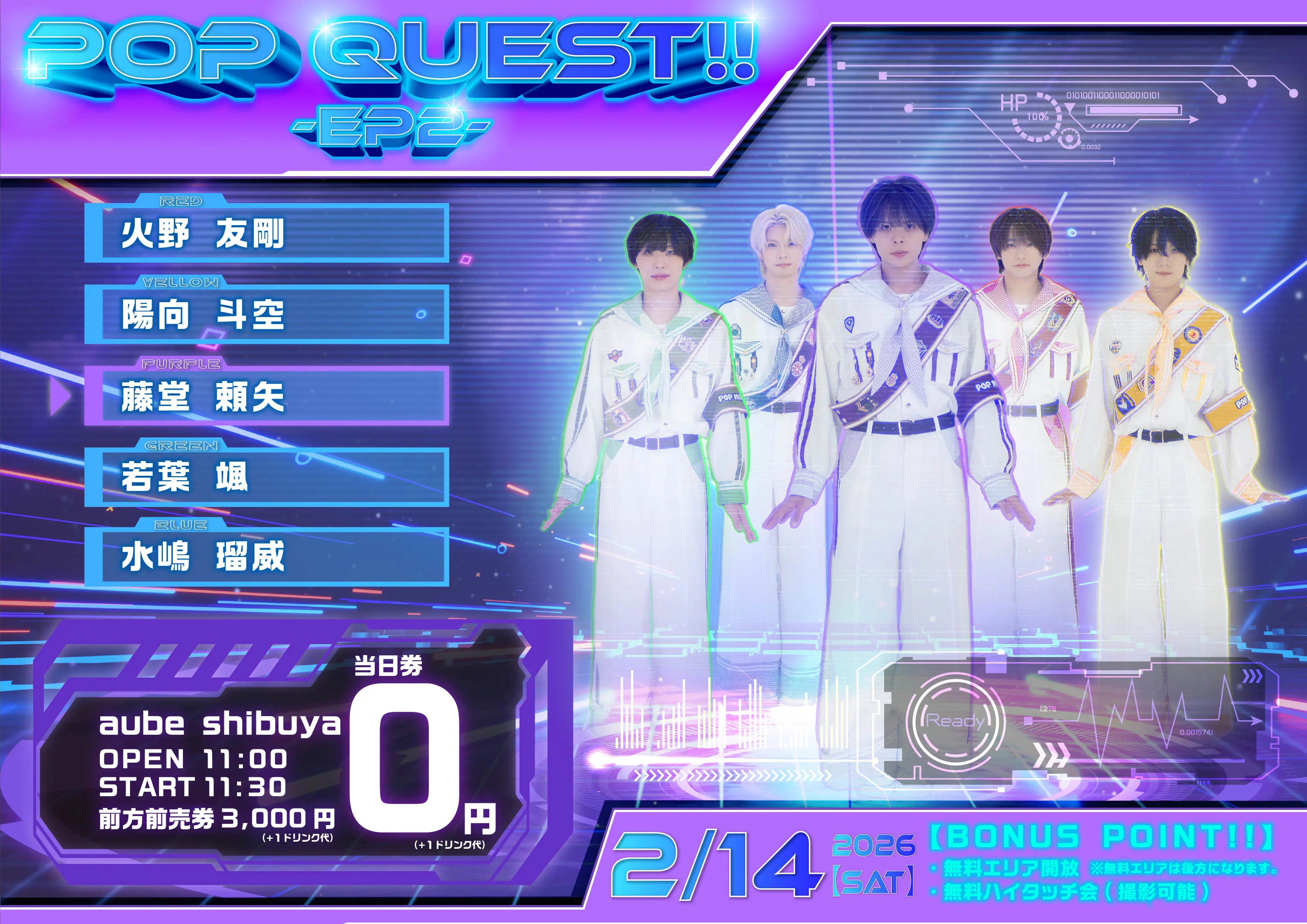 イベント入場時、電子チケット券に印字されている「購入者様氏名(お申込みされた方)」と、下記指定の「顔写真付き証明書」による本人確認をさせていただきます。