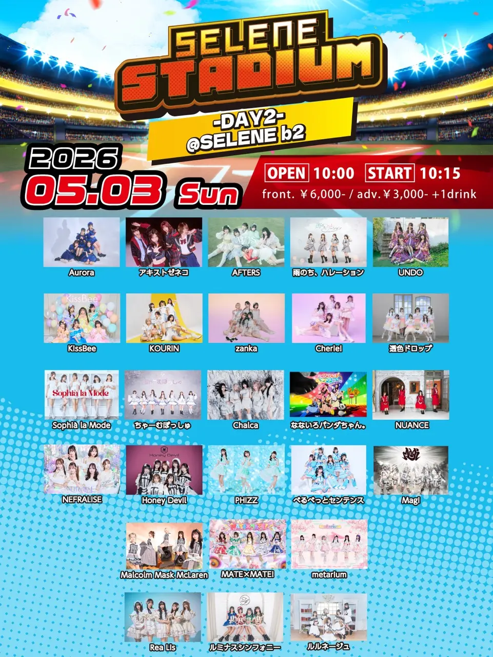 出演者 透色ドロップ / アストレイル / KAMAITACI / AFTERS / 美味しい曖昧 / 美味しい贖罪 / シンダーエラ / XINXIN / じゅじゅ / トウトイナ。 / himawari(船橋) / Payrin’s / MATE×MATE! / めろでぃーぷれいす / RePLAY / ルルネージュ / Aurora / 雨のち、ハレーション / UNDO / KissBee / Question.VI / KOURiN / Sugar♡Holic / Chalca / にっぽん!真骨頂 / buGG / Malcolm Mask McLaren / Maison de Queen / mementoa
