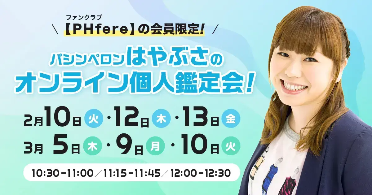 【PHfere会員限定】パシンペロンはやぶさのオンライン鑑定会!
