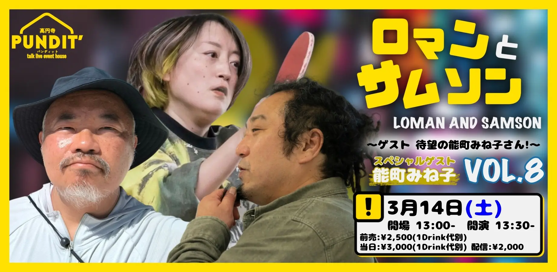 25/3月14日(土・昼)ロマンと サムソン Vol.8〜ゲスト 待望の能町みねこさん!〜