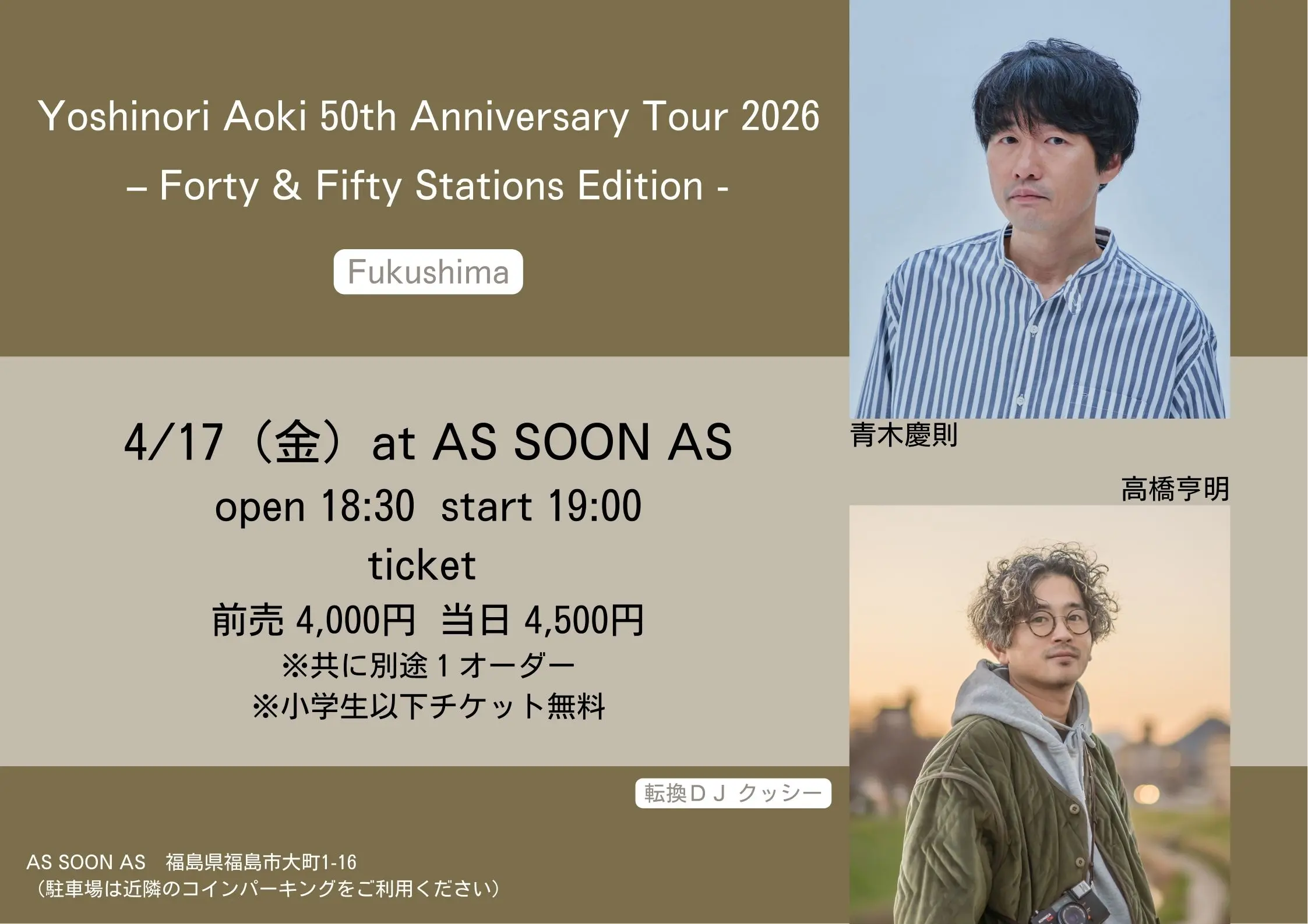 〜2026年4月17日(金)会場 AS SOON AS(福島県)