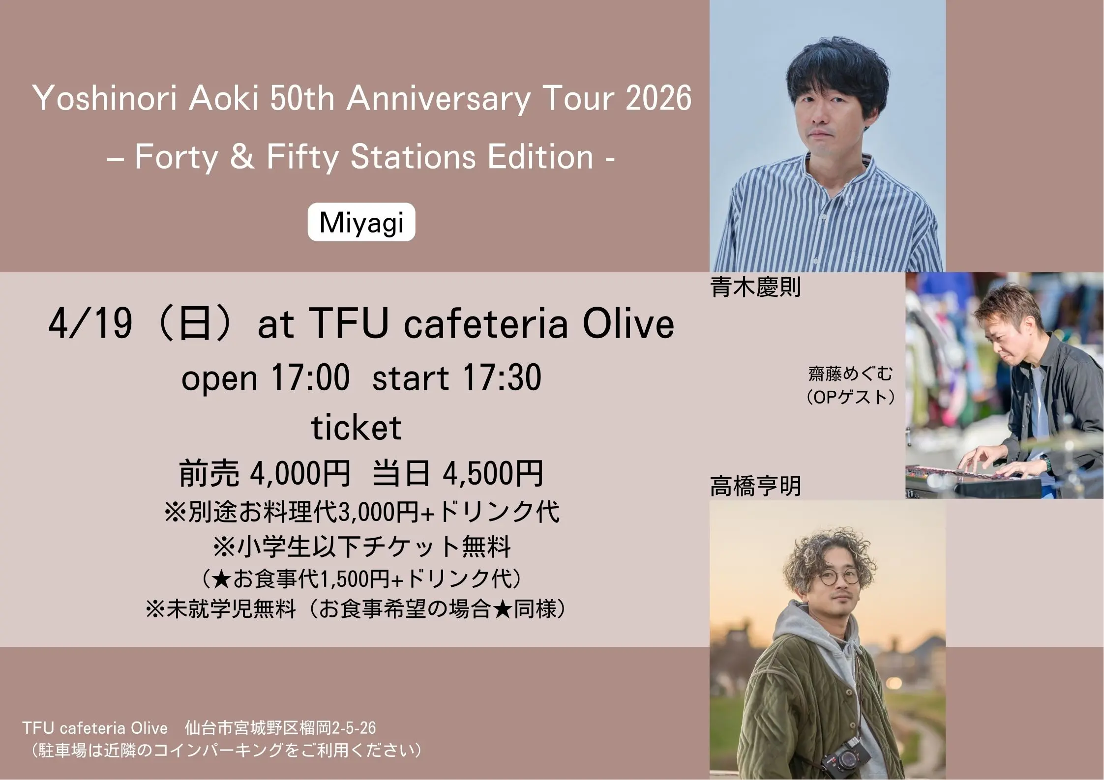 【宮城公演】Yoshinori Aoki 50th Anniversary Tour 2026 – Forty & Fifty Stations Edition -