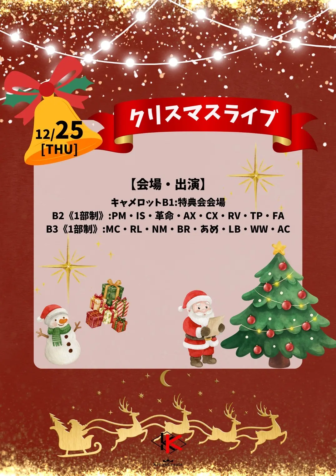 12/25 (木) 1部制 ~ クリスマスライブ ~