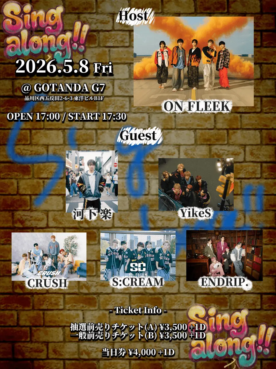 出演者 ON FLEEK / YikeS / ENDRIP. / S:CREAM / 河下楽 / CRUSH