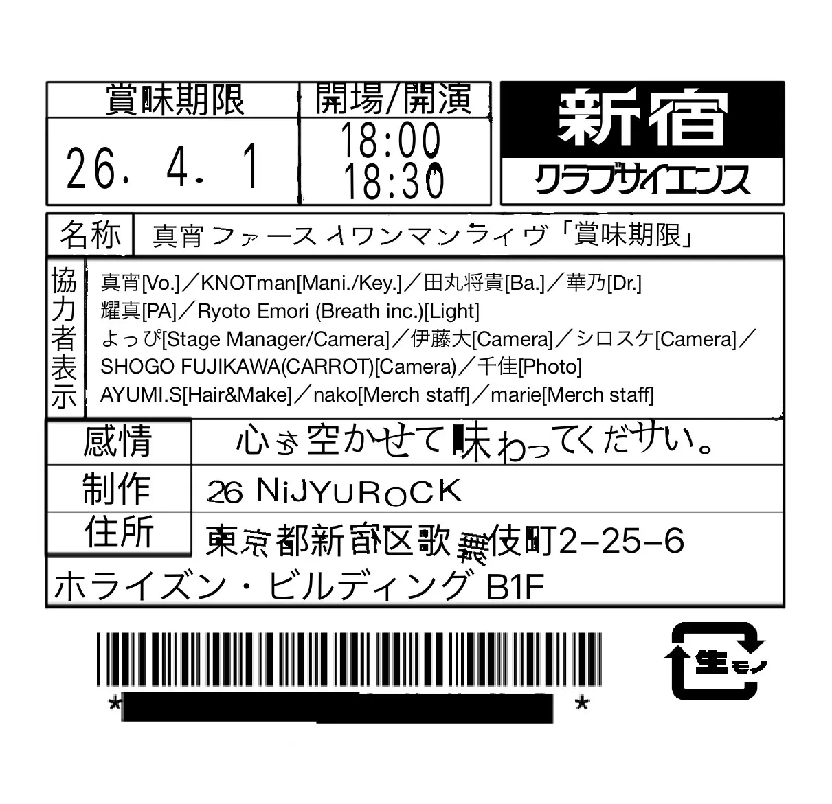 真宵 first one man live「賞味期限」