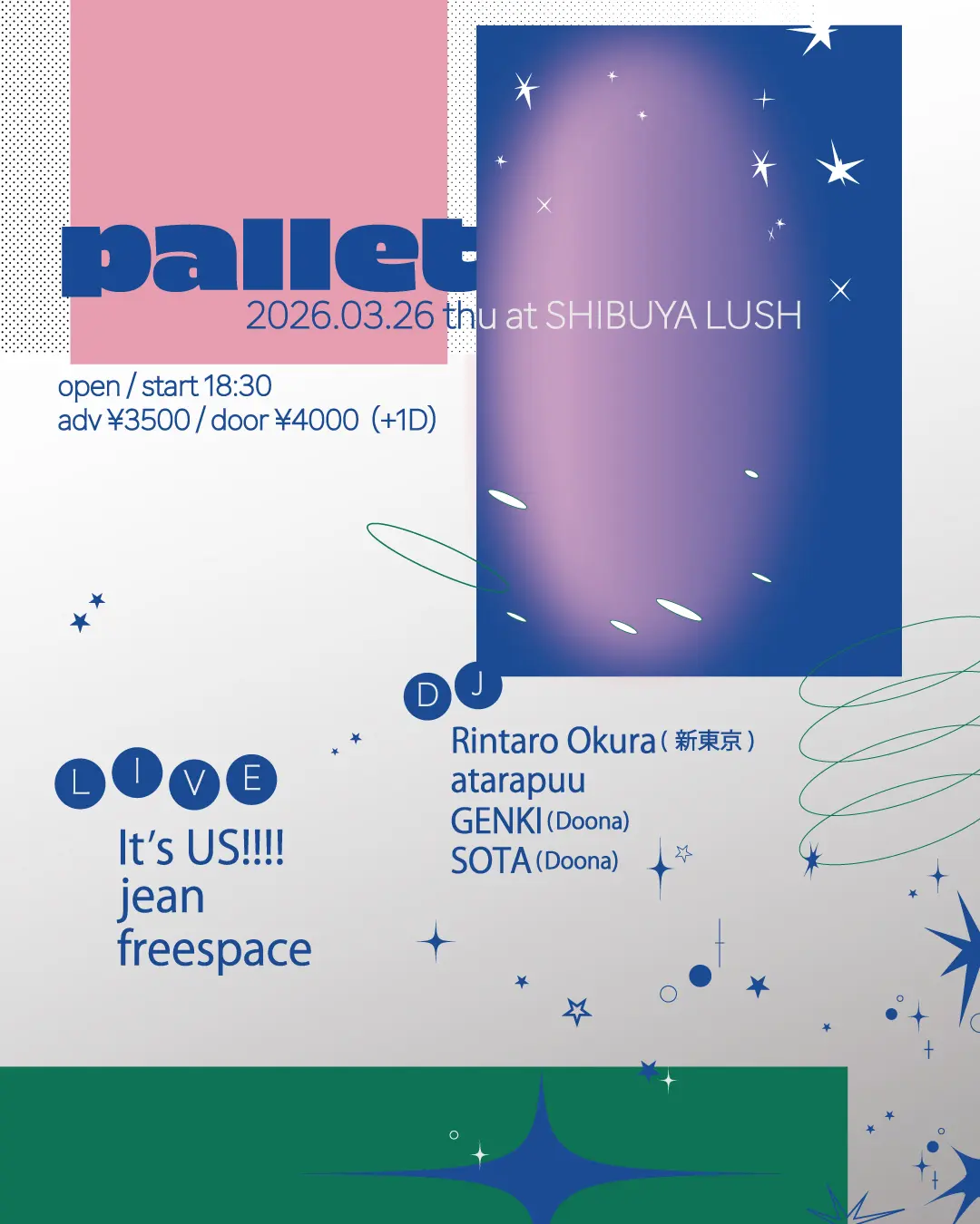 出演者 It’s US!!!! / jean / freespace / Rintaro Okura(新東京) / atarapuu / GENKI(Doona) / SOTA(Doona)