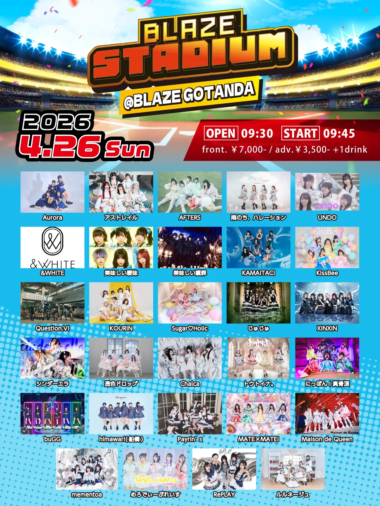 出演者 iCON! / I MY ME MINE / 雨のち、ハレーション / アルテミスの翼 / alma / UNBS / 美味しい水玉 / 可愛いって言わないと呪う! / KOURiN / コングラッチェ! / Sugar♡Holic / じゅじゅ / シンダーエラ / ストロボグリッター / 戦国アニマル極楽浄土 / ちゃーむぽっしゅ / ニコルポップ / NiLUNLOCK / Noreco / Payrin's / べるべっとセンテンス / ミリオン!~ Million Heaven Tokyo ~ / めろでぃーぷれいす / ゆえない / SWANTICK