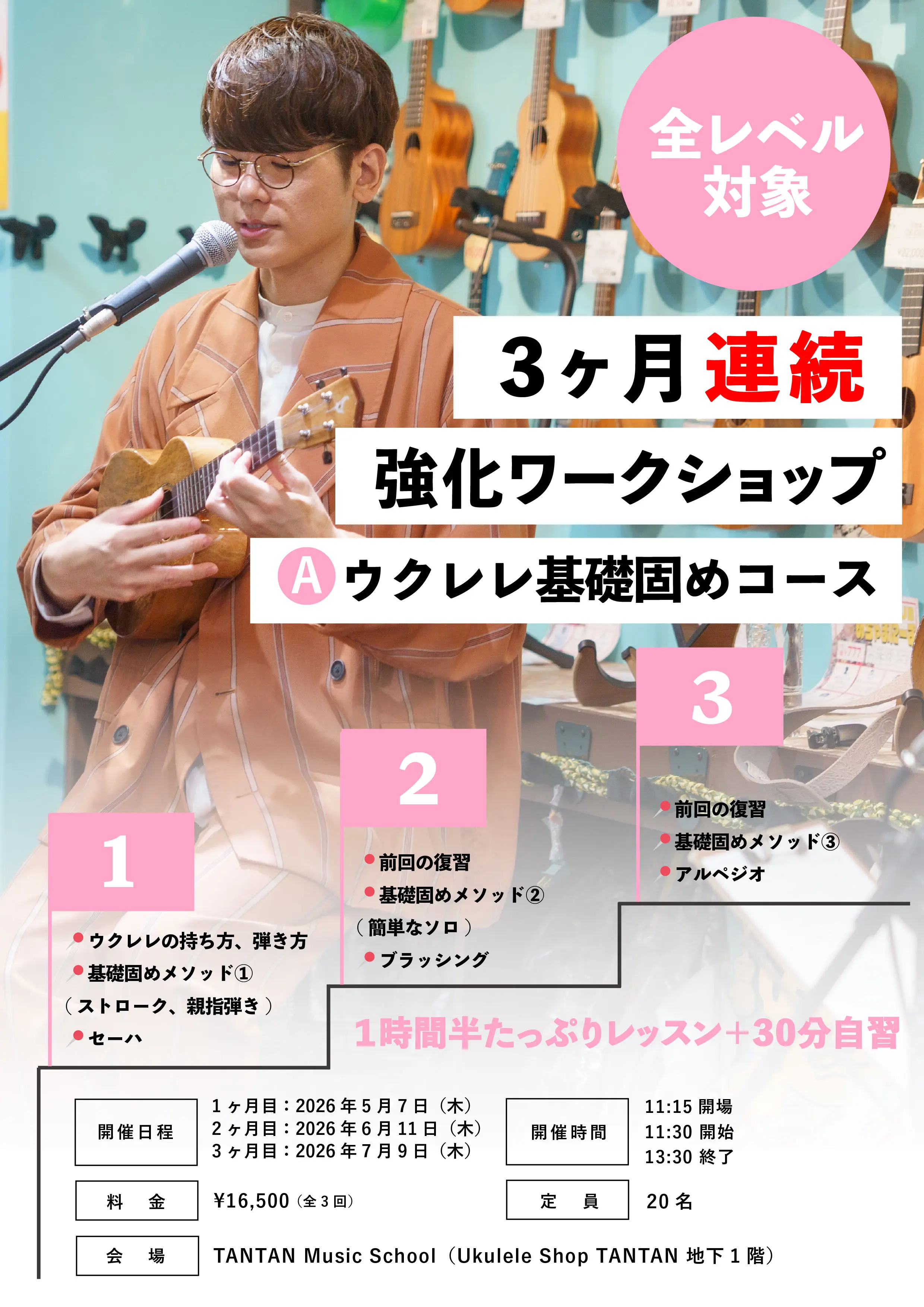 3ヶ月連続強化ワークショップ【Aコース】ウクレレ基礎固めコース(全レベル対象)