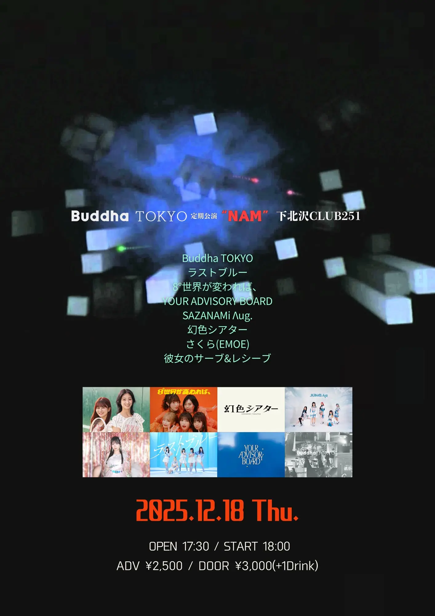 出演者 Buddha TOKYO / ラストブルー / YOUR ADVISORY BOARD / 8°世界が変われば、 / SAZANAMi Λug. / 幻色シアター / さくら(EMOE) / 彼女のサーブ&レシーブ