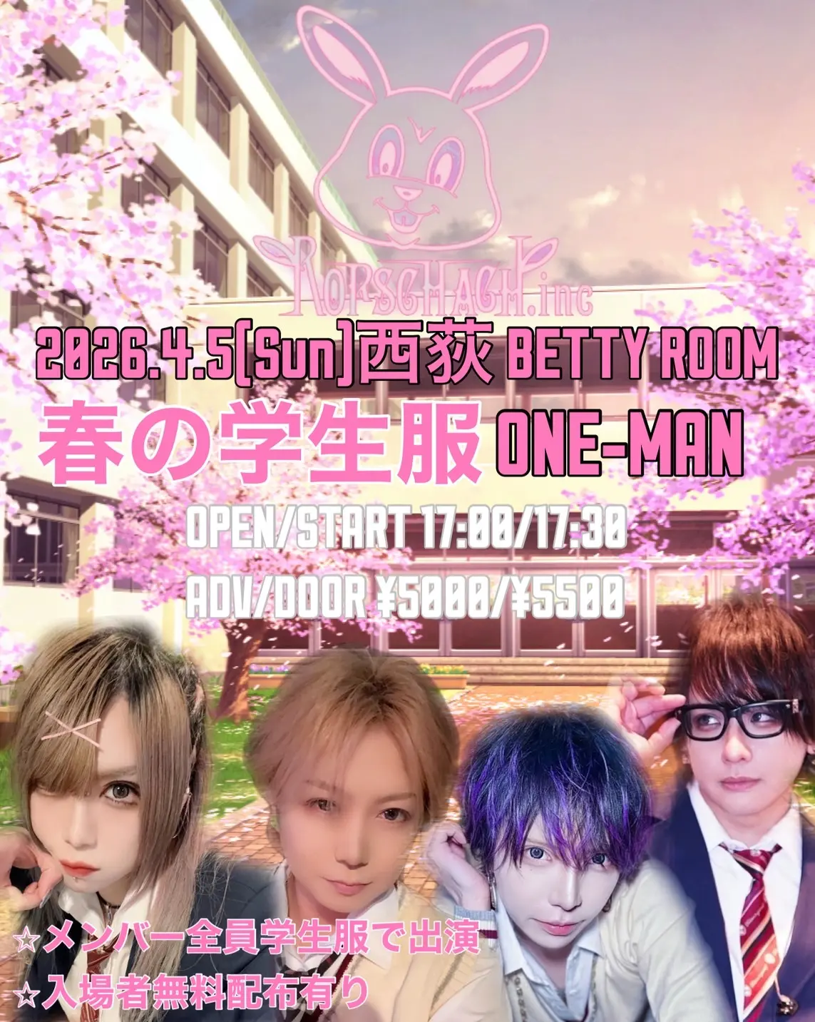Bチケット:4月5日(日)西荻BETTY ROOM : Rorschach.inc 春の"学生服"ONE-MAN