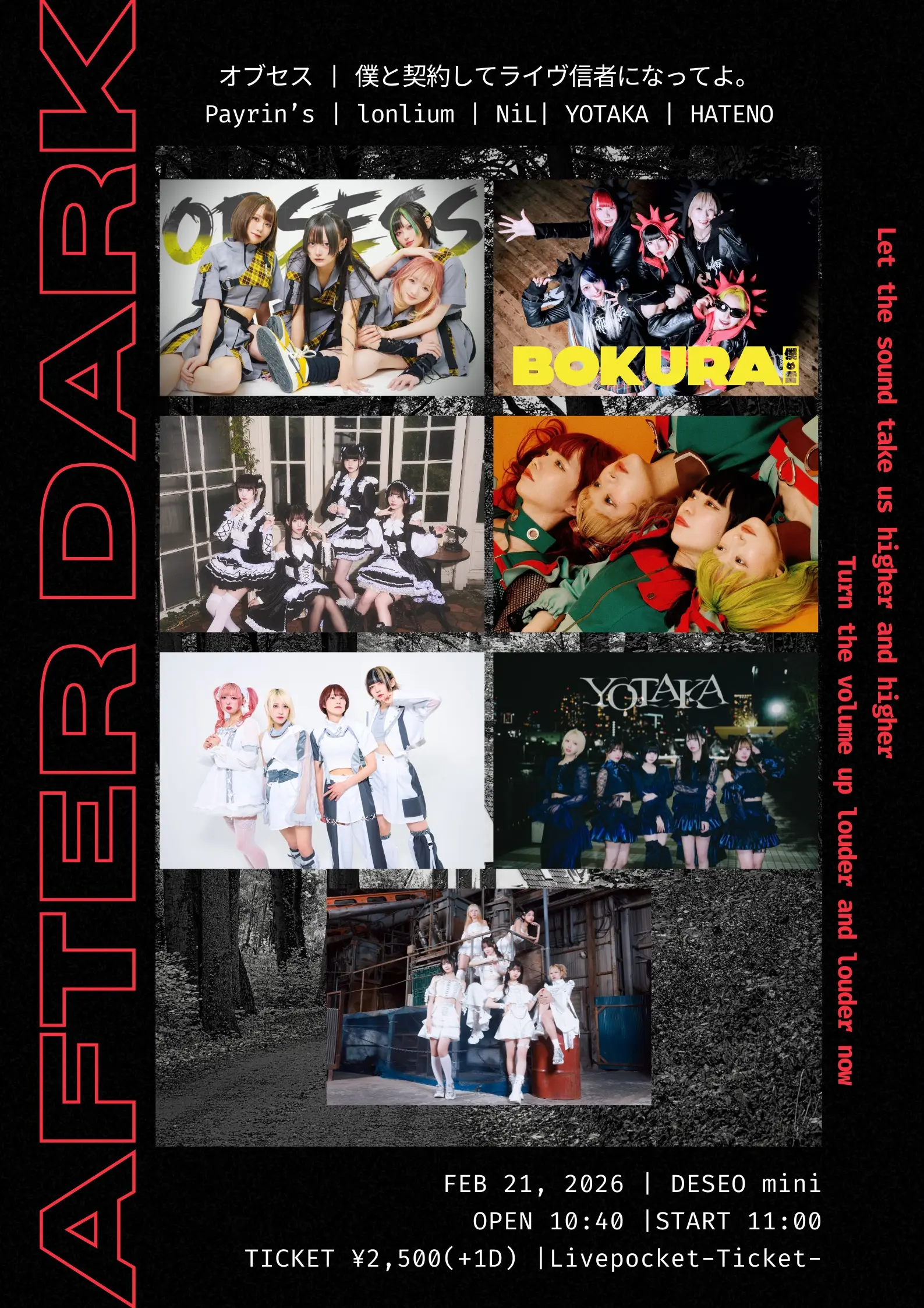 出演者 NiL / オブセス / HATENO / Payrin's / 僕と契約してライヴ信者になってよ。 / YOTAKA / lonlium