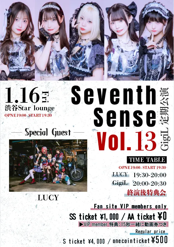 【FC限定】VIPチケット(最前方エリア、ワンマン限定Tシャツサイン付き、ファストパスチェキ券)30,000円/SSチケット(前方エリア優先入場、ワンマン限定Tシャツサイン付き、ファストパスチェキ券)15,000円/撮影可能チケット(撮影可能エリア、ワンマン限定Tシャツ)15,000円/Sチケット6,000円(一般エリア優先入場、ワンマン限定Tシャツ)/一般Aチケット(一般エリア)1,000円/一般手売りBチケット(一般エリア)1,000円/一般招待Cチケット(一般エリア)1,000円/一般招待Dチケット(一般エリア)1,000円/当日各+1,000円(D代別)