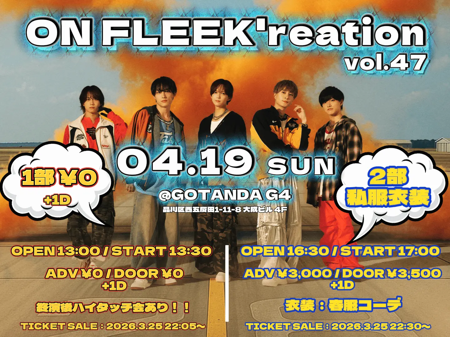 ※その他、悪質な申し込みと判断した場合は、今後ON FLEEKのイベントに参加できなくなる場合がございます。2部優先エリア入場券