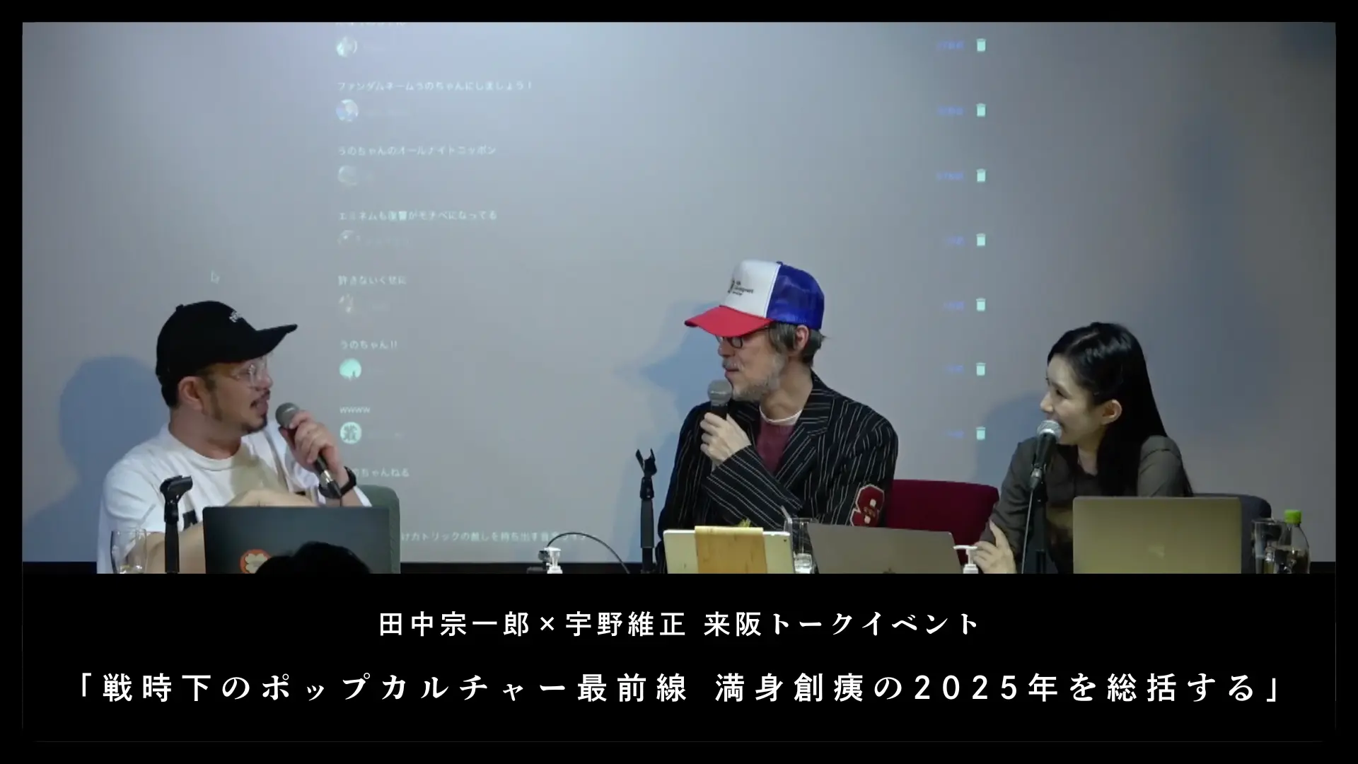田中宗一郎×宇野維正 来阪トークイベント「戦時下のポップカルチャー最前線 満身創痍の2025年を総括する」