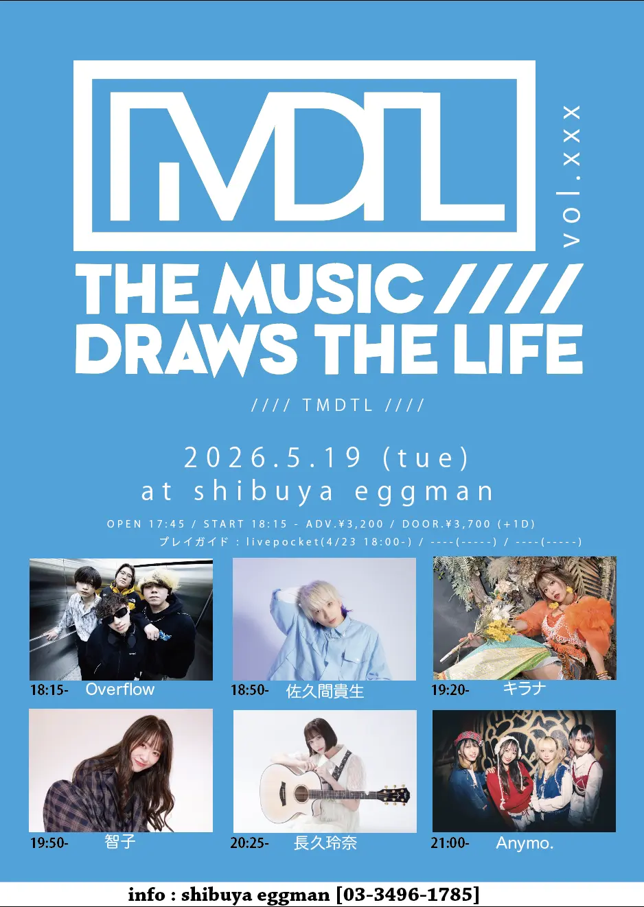 出演者 長久玲奈 / Anymo. / 智子 / キラナ / 佐久間貴生 / Overflow