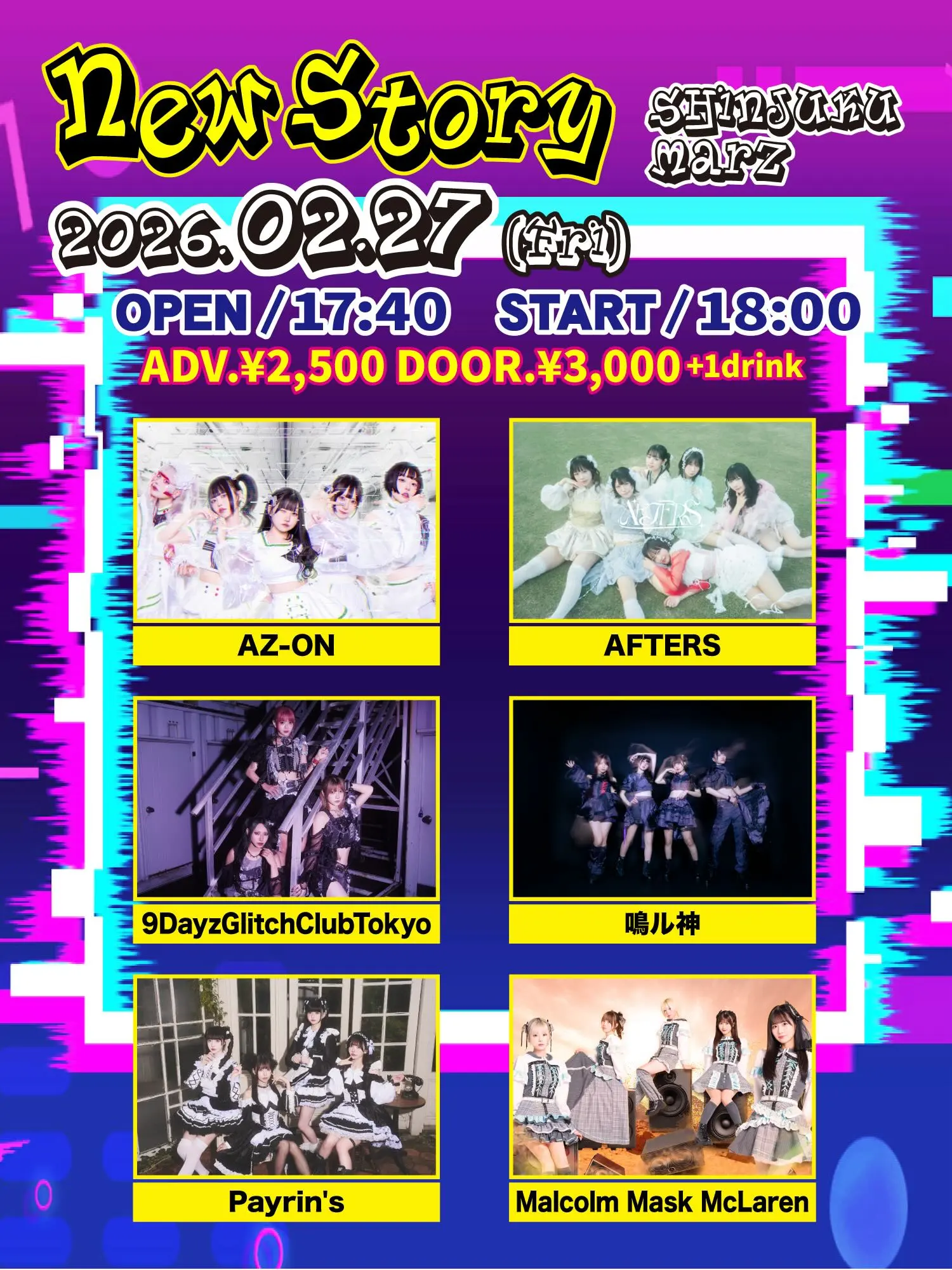 出演者 AZ-ON / AFTERS / 9DayzGlitchClubTokyo / 鳴ル神 / Payrin's / Malcolm Mask McLaren