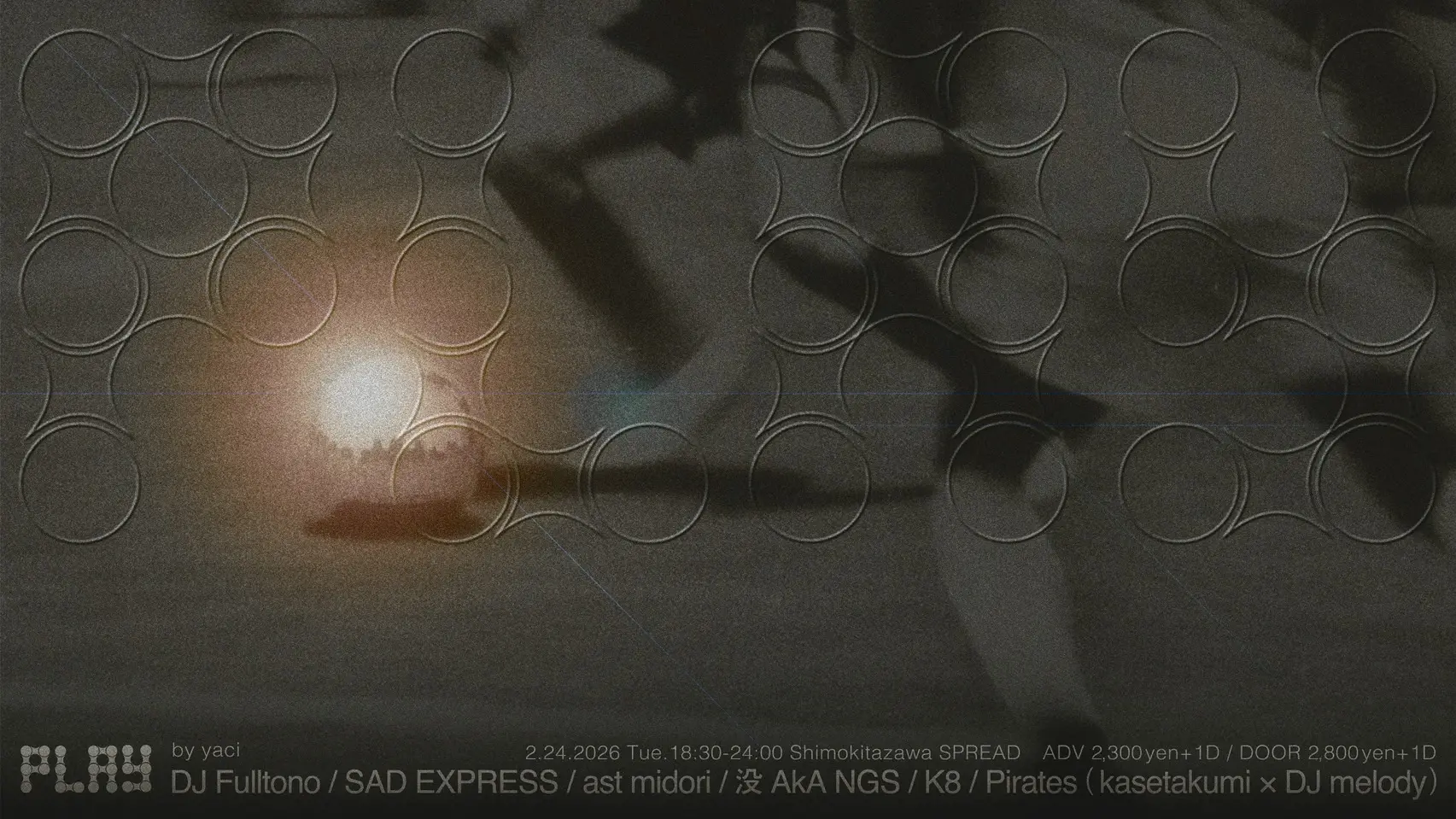 出演者 DJ Fulltono / SAD EXPRESS / ast midori / 没 aka NGS / K8 (TYO GQOM) / Pirates(kasetakumi × DJ melody)