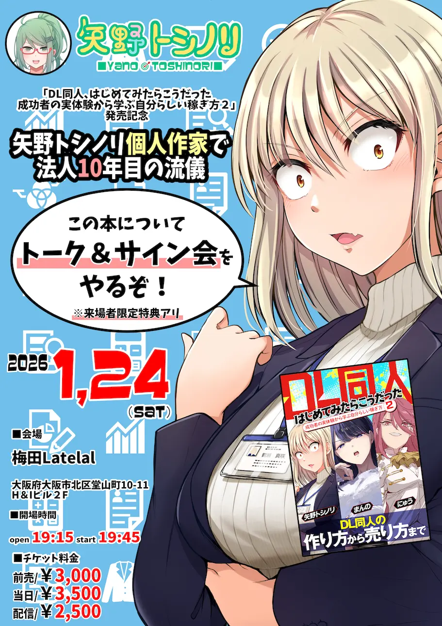 「DL同人、はじめてみたらこうだった 成功者の実体験から学ぶ自分らしい稼ぎ方2」発売記念 「矢野トシノリ個人作家で法人10年目の流儀」
