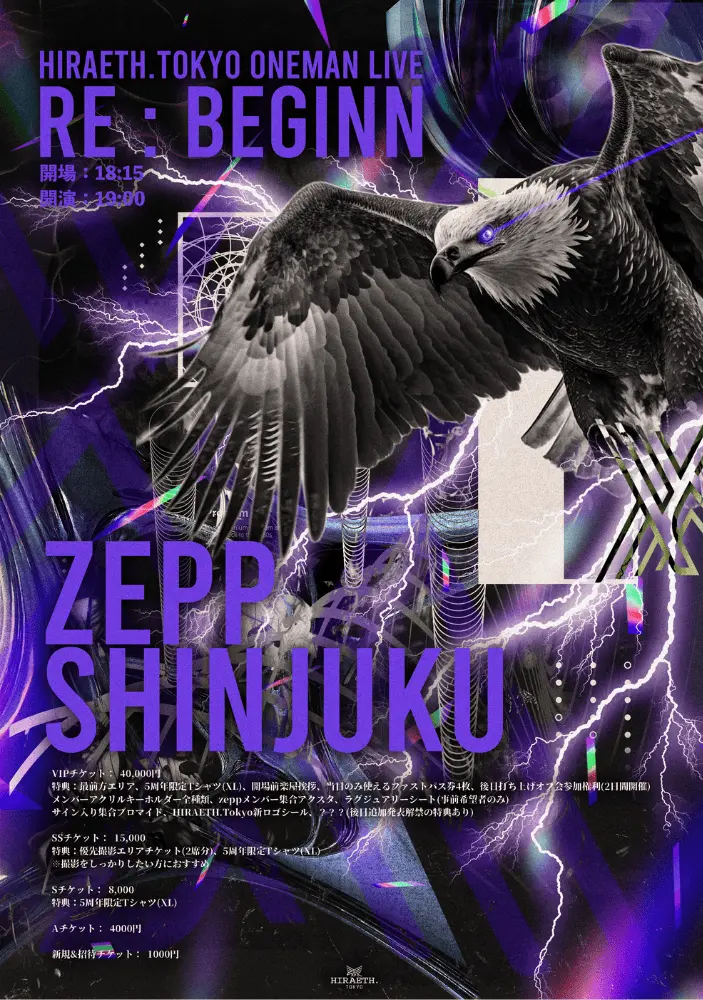 【VIPチケット抽選申し込み】☆☆☆☆☆ - HIRAETH.Tokyo 5周年ワンマンライブ -【 Re : Beginn 】