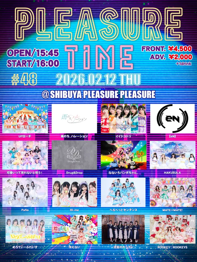 出演者 雨のち、ハレーション / 可愛いって言わないと呪う! / HAKUSULA / べるべっとセンテンス / ゆえない / UPローチ / イイトコドリ / 【eN】 / Drug&Drop / なないろパンダちゃん。 / Pafio / Blüme / MATE×MATE! / めろでぃーぷれいす / 流星のカーテン / ROOKEY♡ROOKEYS