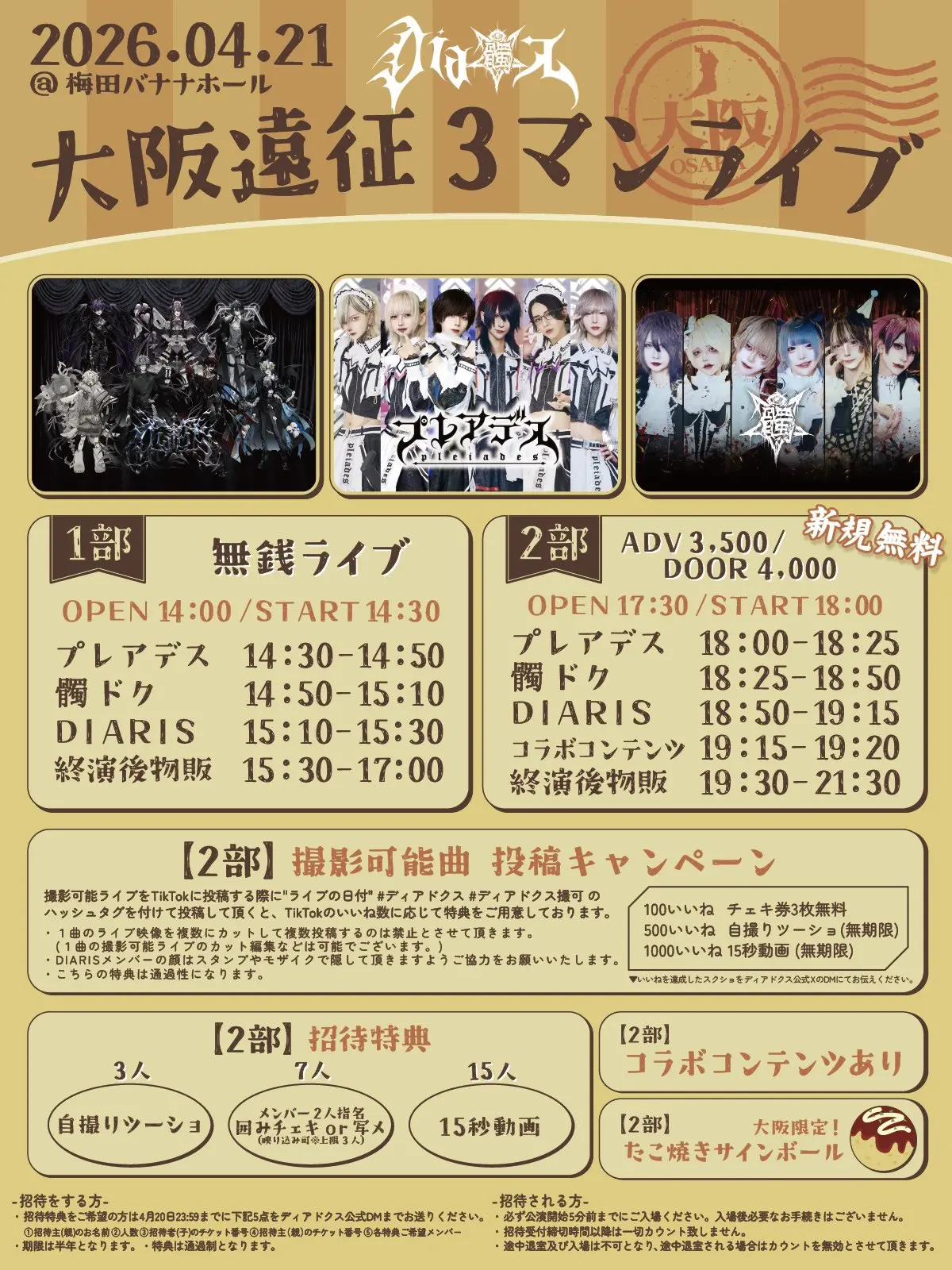 【Bチケット】2部 ディアドクス大阪遠征3MANLIVE