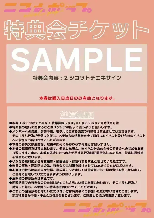 ・スタッフの指示に従って特典会へのご参加をお願いいたします。