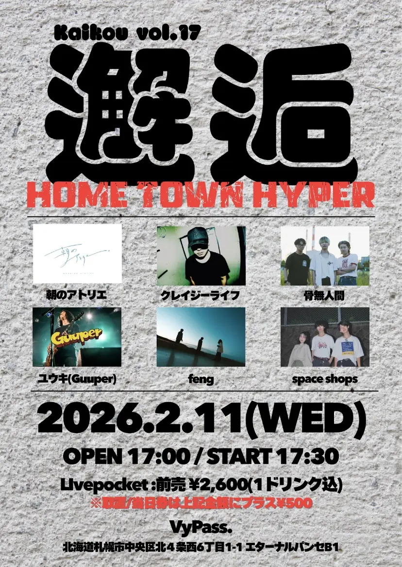 出演者 朝のアトリエ / クレイジーライフ / 骨無人間 / ユウキ(Guuper) / feng / space shops