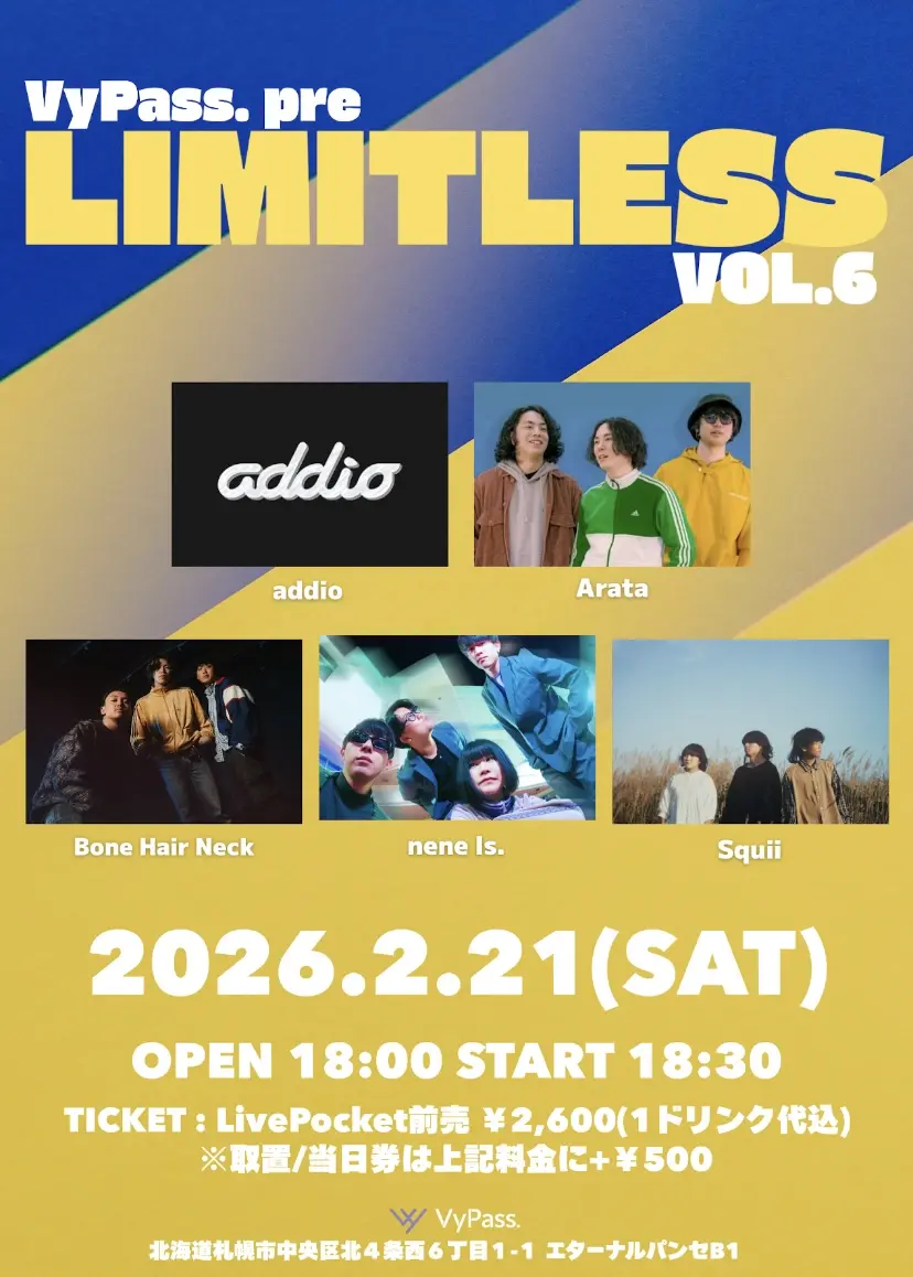 出演者 addio / Arata / Bone Hair Neck / nene Is. / Squii