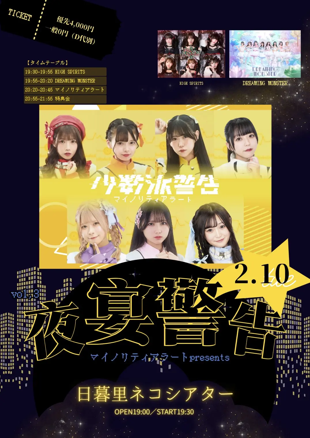 出演者 マイノリティアラート / DREAMING MONSTER / HIGH SPIRITS