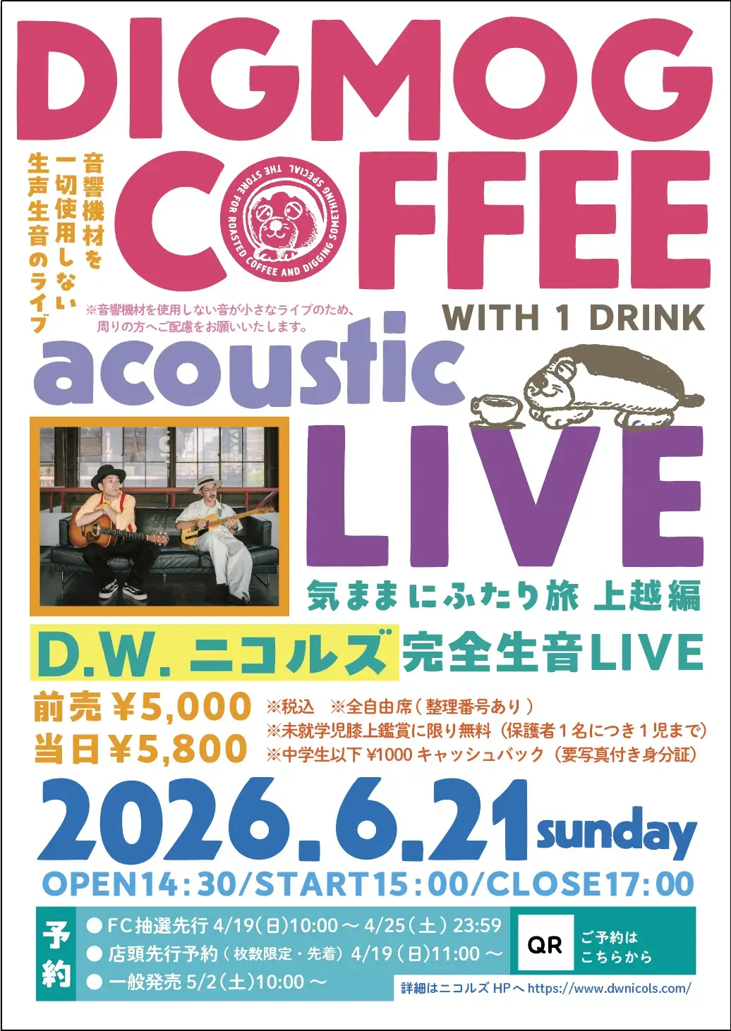 【※一般発売】6/21(日)気ままにふたり旅 上越編 D.W.ニコルズ完全生音LIVE at DIGMOG COFFEE