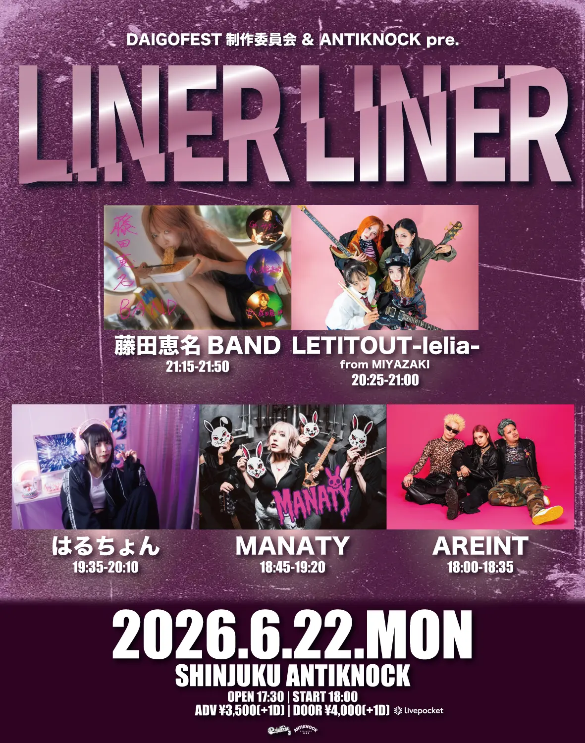 出演者 藤田恵名BAND / はるちょん / MANATY / LETITOUT-lelia- / AREINT