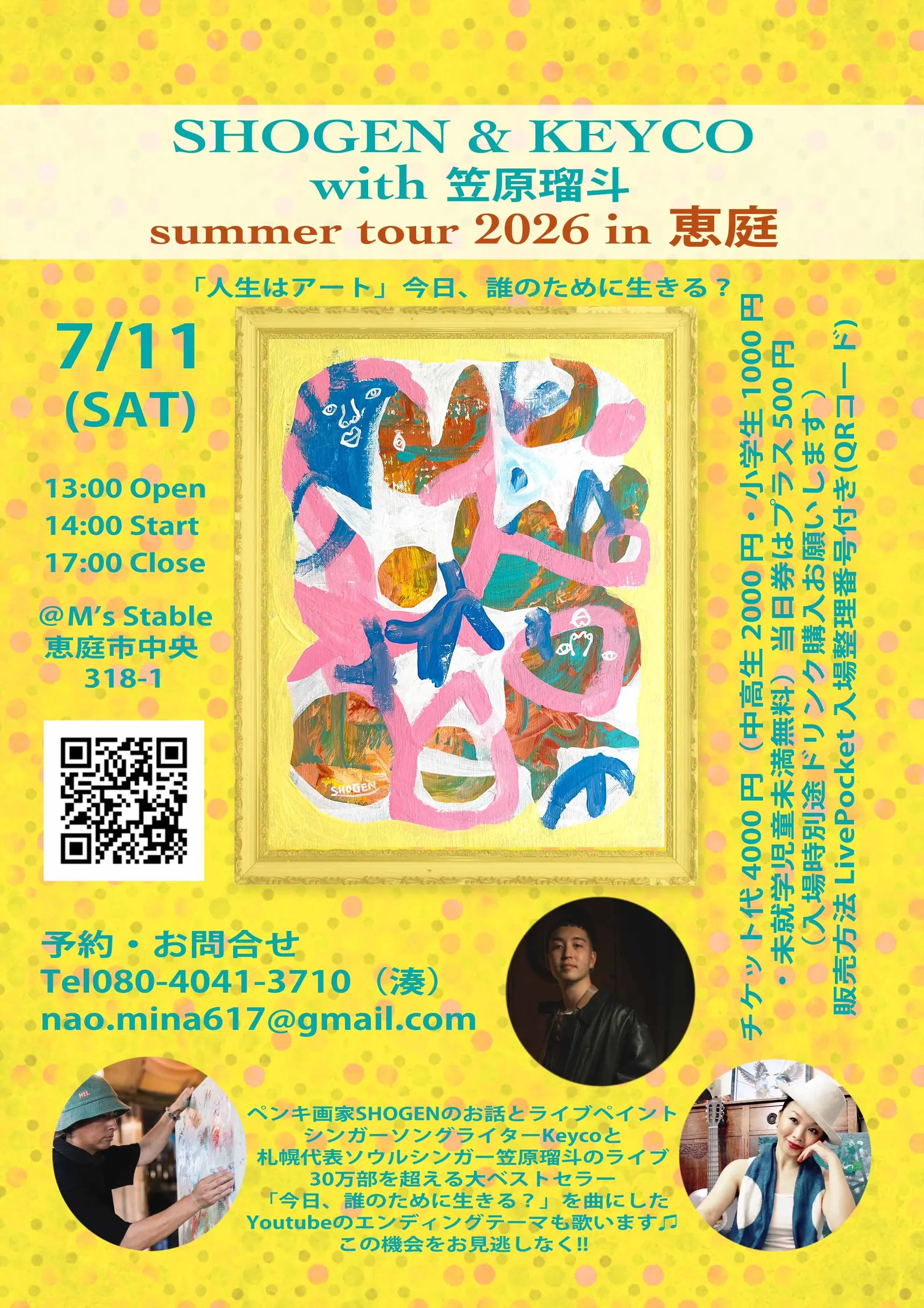 SHOGEN & Keyco summer tour 2026 in北海道 「人生はアート」今日、誰のために生きる?in恵庭