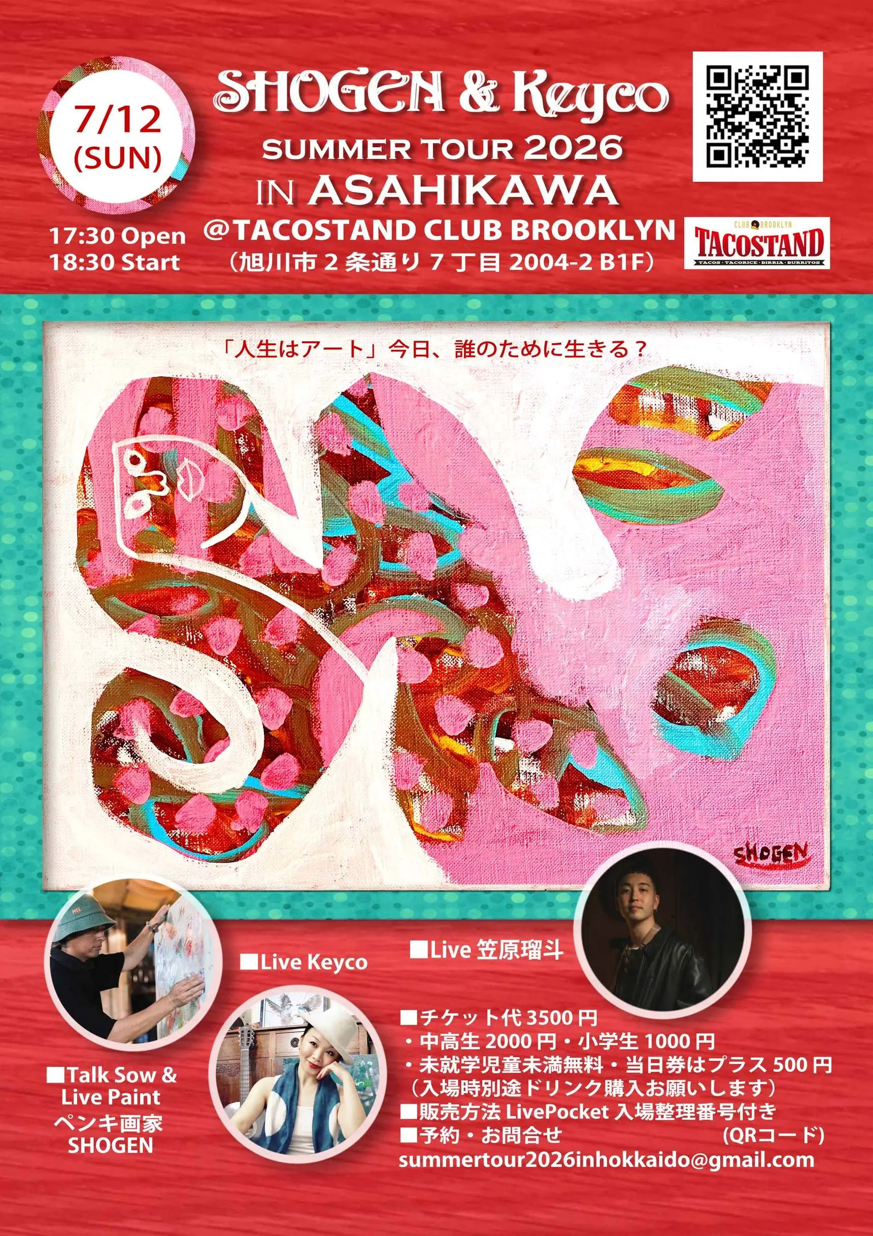 SHOGEN & Keyco summer tour 2026 in北海道 「人生はアート」今日、誰のために生きる?in旭川