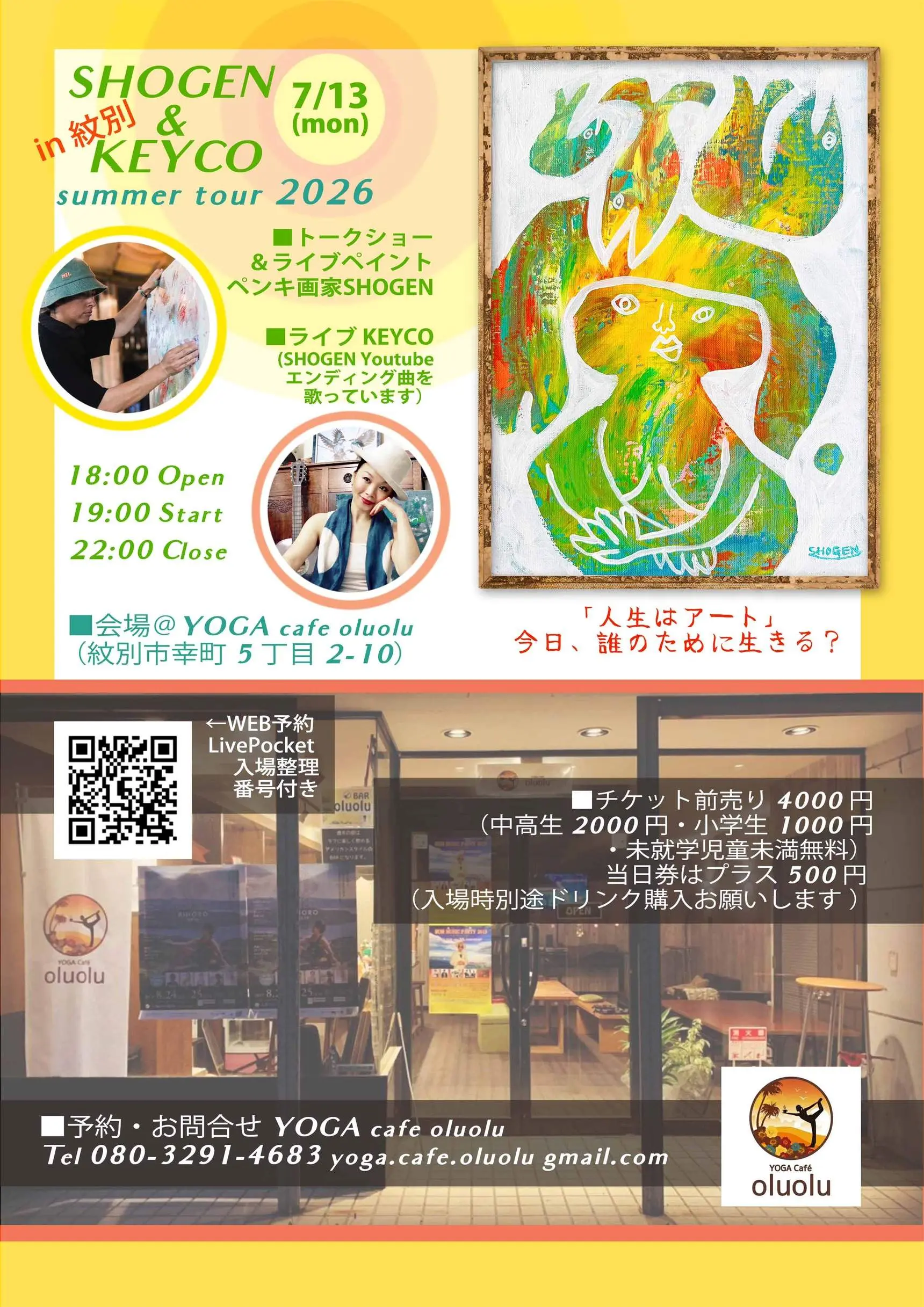 SHOGEN & Keyco summer tour 2026 in北海道 「人生はアート」今日、誰のために生きる?in紋別