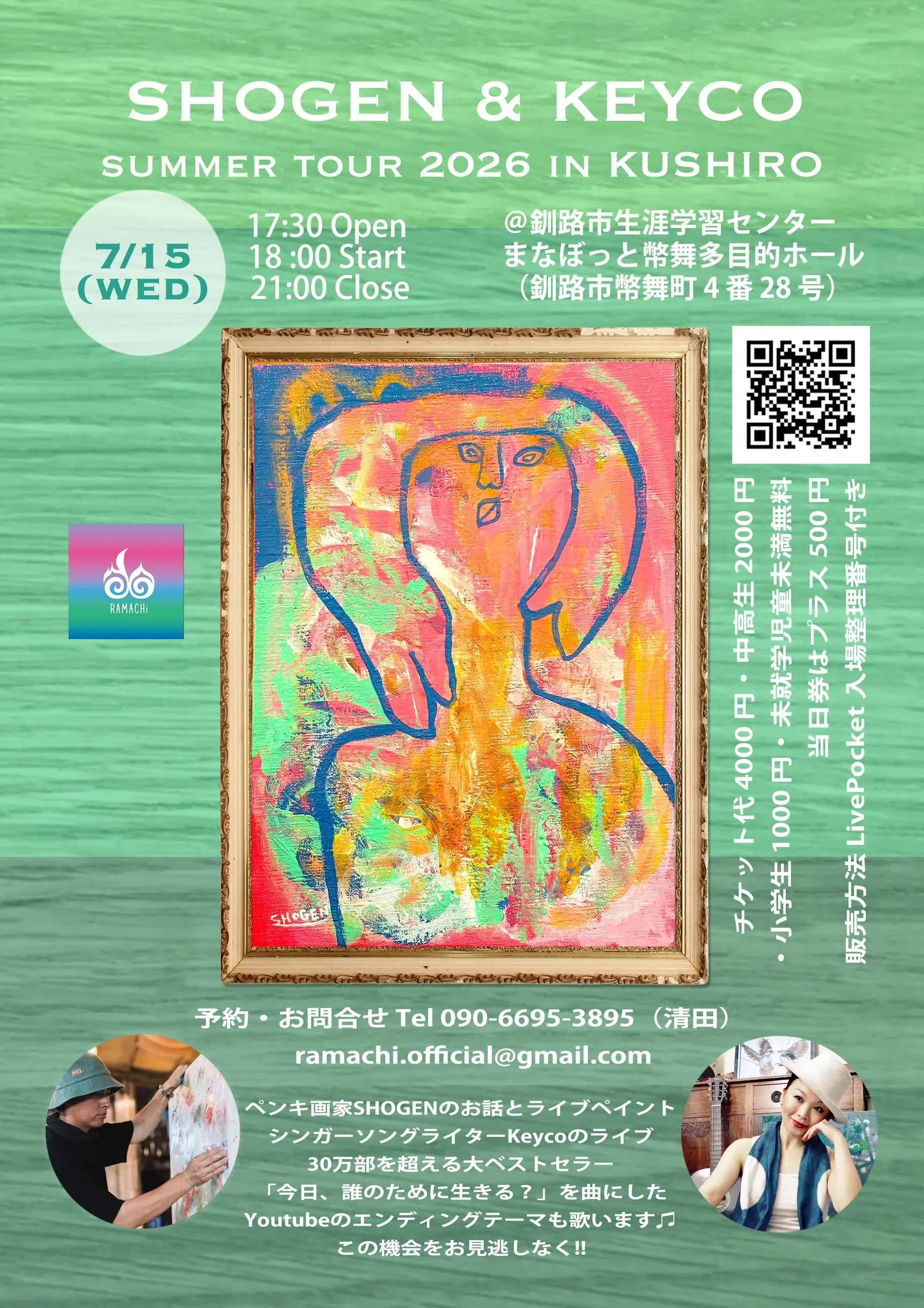 SHOGEN & Keyco summer tour 2026 in北海道 「人生はアート」今日、誰のために生きる?in釧路