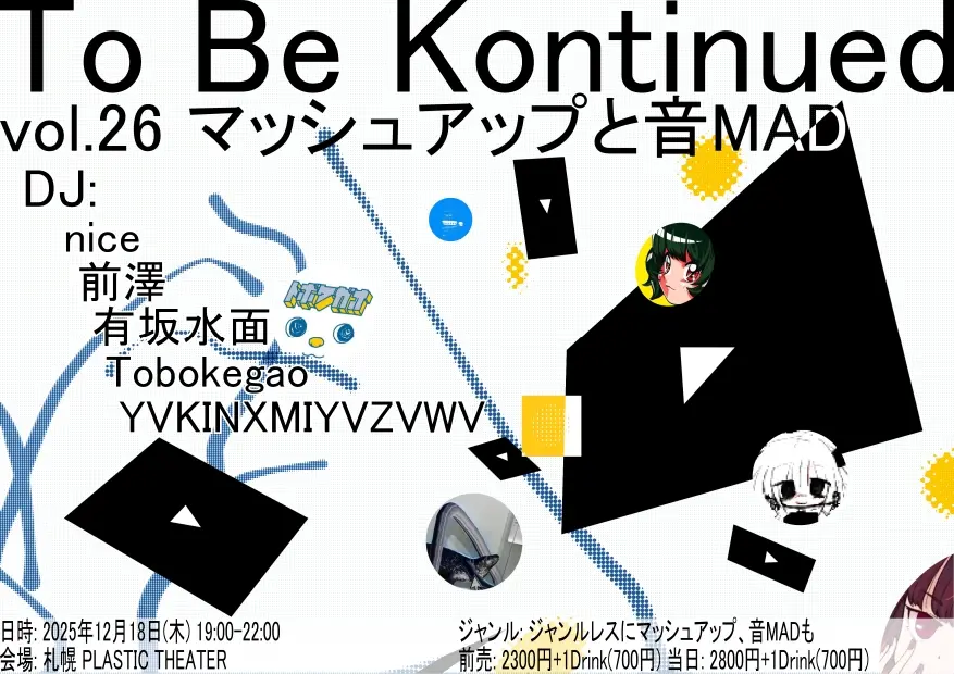 出演者 前澤 / nice / 有坂水面 / 魔導音主 / Tobokegao / YVKINXMIYVZVWV