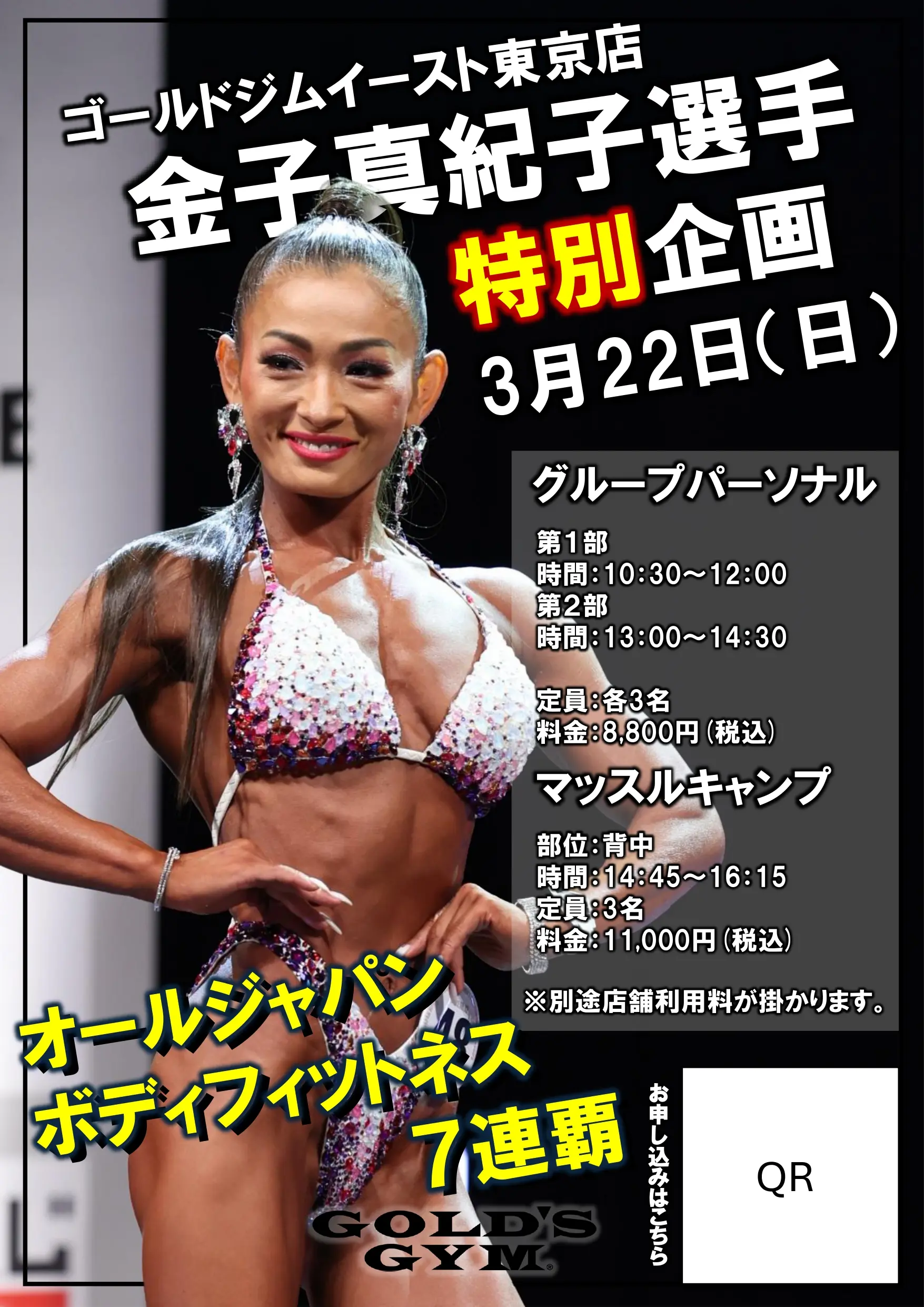 金子真紀子選手特別企画 グループパーソナル&マッスルキャンプ【ゴールドジムイースト東京店】