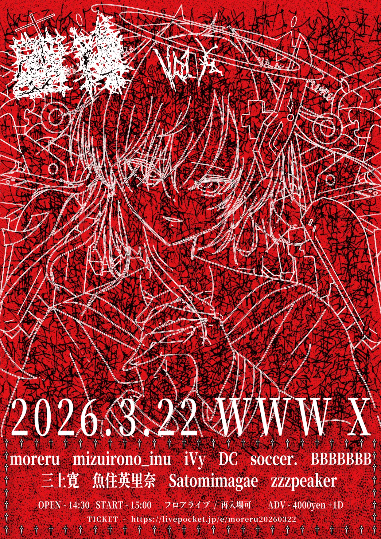 出演者 moreru / mizuirono_inu / iVy / DC / soccer. / BBBBBBB / 三上寛 / 魚住英里奈 / Satomimagae / zzzpeaker
