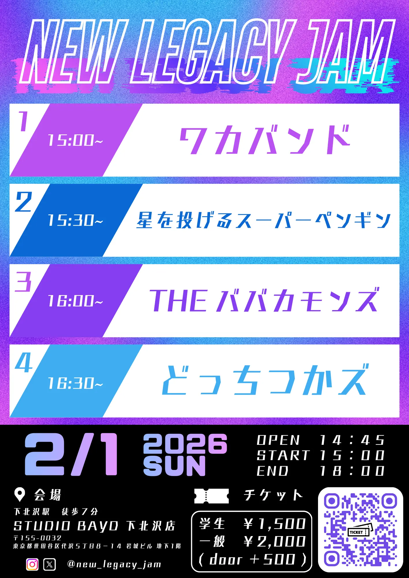 【完全オーディエンス投票型】ライブコンテスト New Legacy Jam 下北沢 〜その一歩が伝説になる。〜