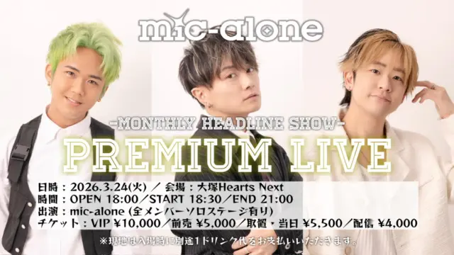 3/24(火)mic-alone PREMIUM LIVE