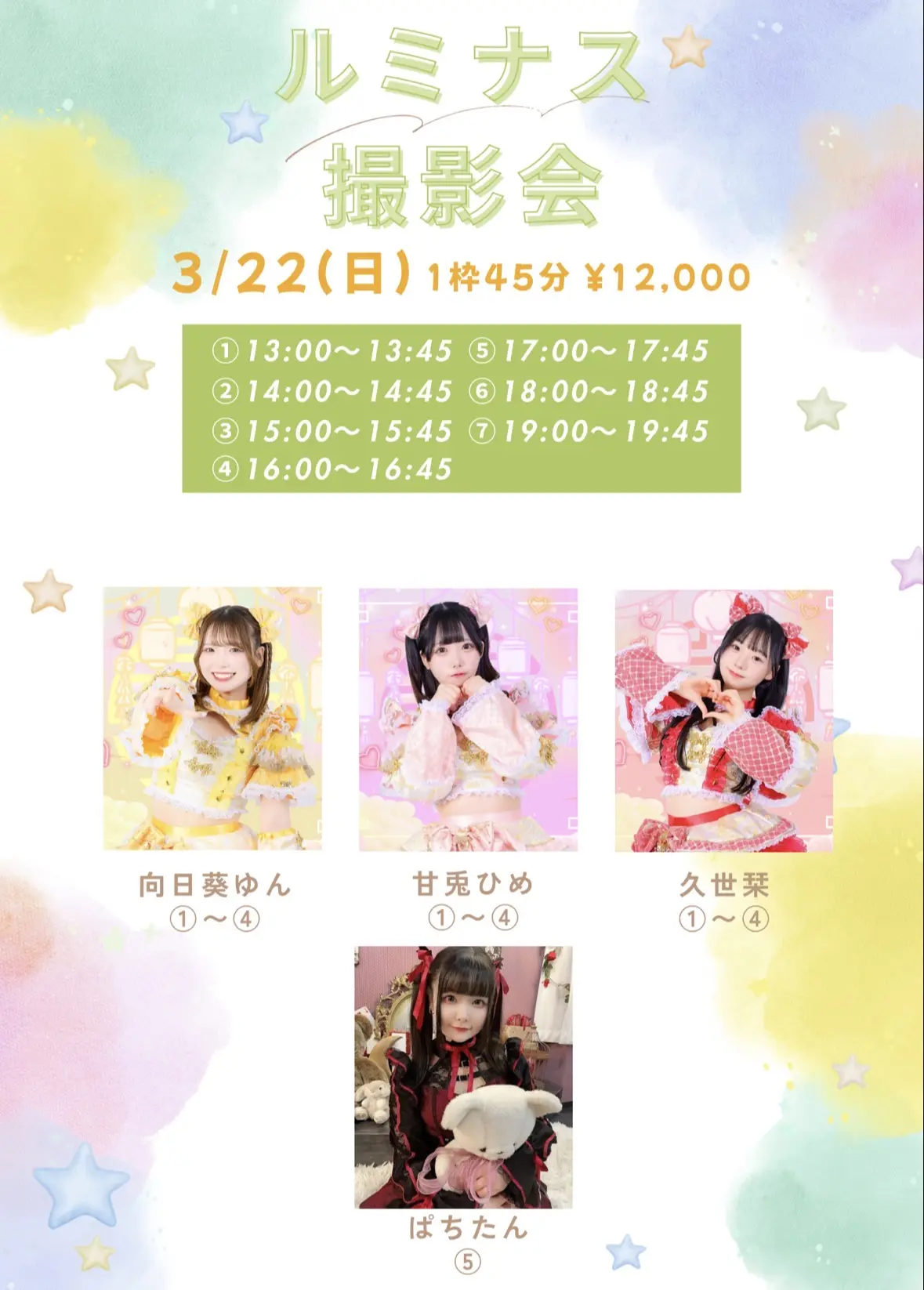ルミナス撮影会【向日葵ゆん、甘兎ひめ、久世栞、ぱちたん】